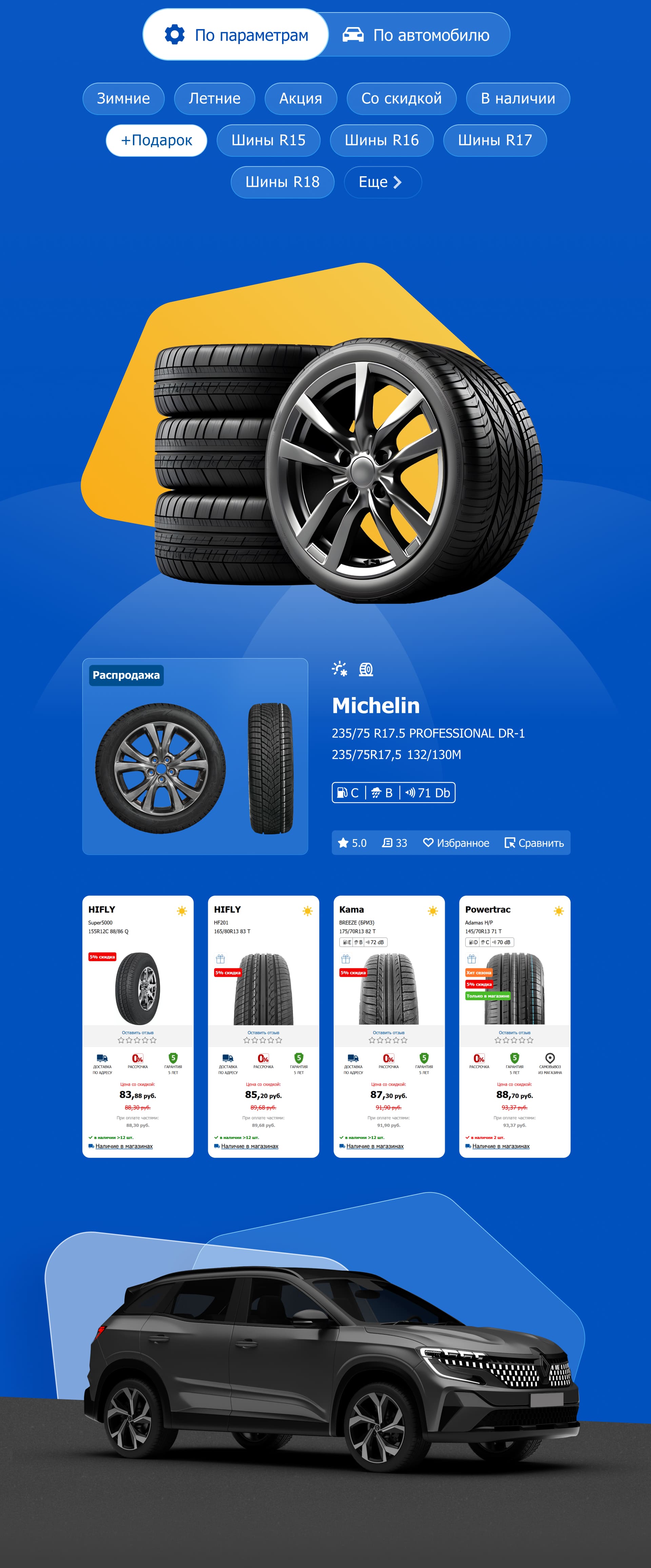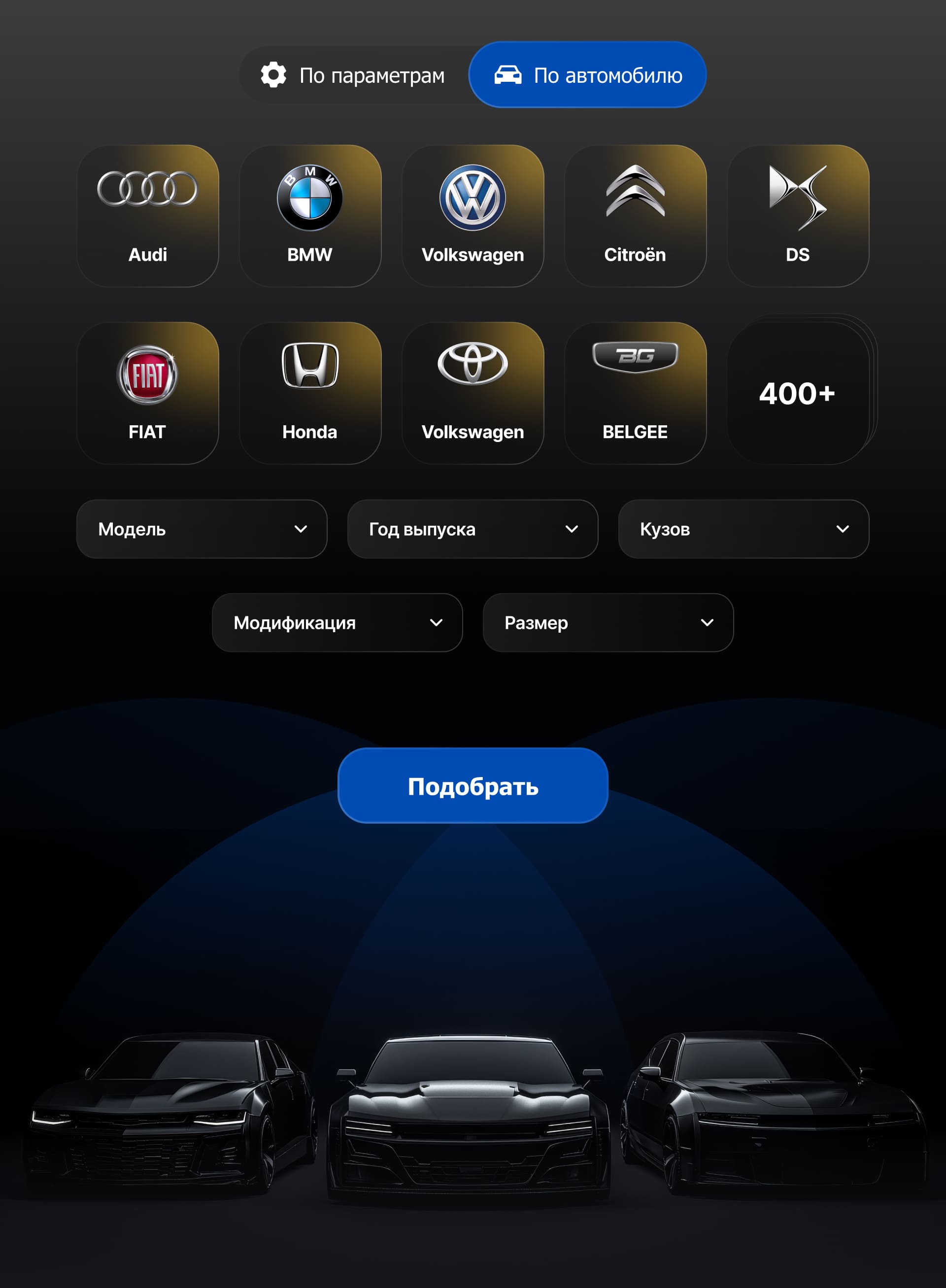 Можно подобрать шины двумя удобными способами: по детальным техническим характеристикам или через поиск по марке автомобиля. Такой подход позволяет каждому автолюбителю — независимо от опыта — быстро найти оптимальный вариант. В результате и профессионал, и начинающий водитель легко получат именно то, что соответствует их потребностям.
