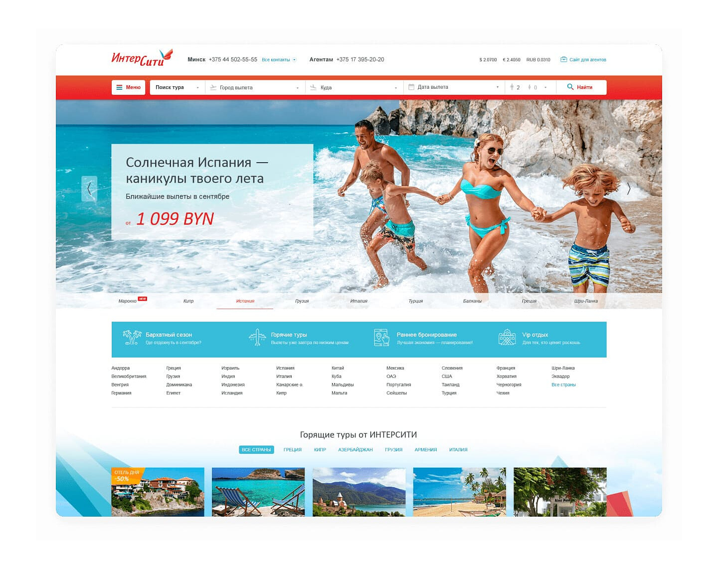 Компания «ИнтерСити» на рынке туристических услуг уже 25 лет и за это время достигла статуса одного из лидирующих туроператоров в стране. Прошло 5 лет с момента создания нами многофункционального сайта для компании. И за это время он успел получить несколько престижных наград.